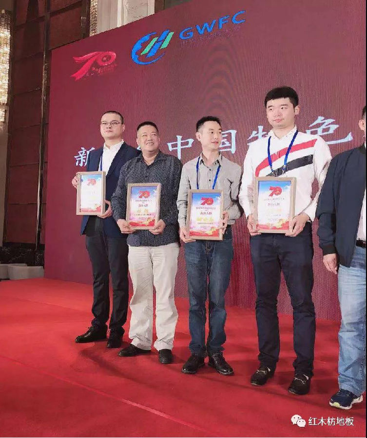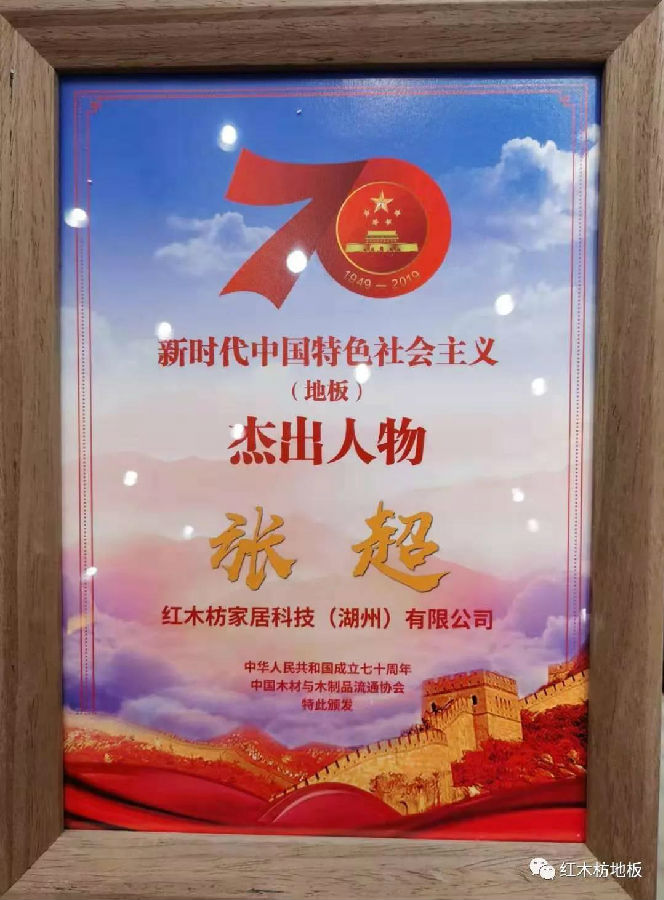2019年10月25日,由中國木材與木制品流通協(xié)會(huì )和湖州市人民政府共同主辦的“2019世界木地板大會(huì )暨第六屆南太湖論壇”在浙江湖州盛大召開(kāi)。紅木枋地板應邀出席大會(huì ),并榮獲“新時(shí)代中國特色社會(huì )主義地板杰出企業(yè)”,董事長(cháng)張超斬獲“新時(shí)代中國特色社會(huì )主義地板杰出人物”大獎。